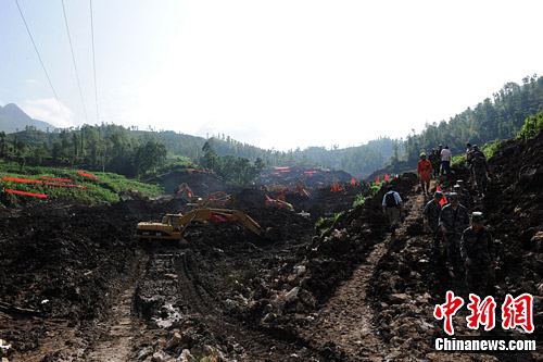 图:贵州关岭山体滑坡搜救现场酷热难耐(3)
