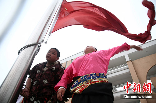 7月1日,来自玉树藏族自治州民族中学的1200余名师生在都江堰八一聚源高级中学举行开学典礼,并正式复课,这群来自玉树灾区首批异地复课的师生将在这里度过至少两年的学习生活。