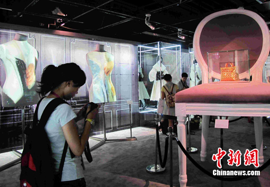 7月1日,上海世博会法国馆迪奥展开幕,路易十六时期的圆形椅子,巨型香水瓶,藤格子共同呈现了一场奢侈品“豪门盛宴”。中新社记者 陈婷婷 摄