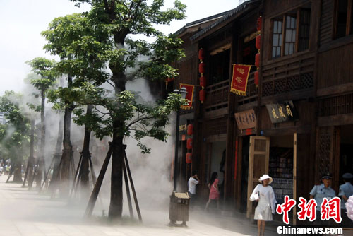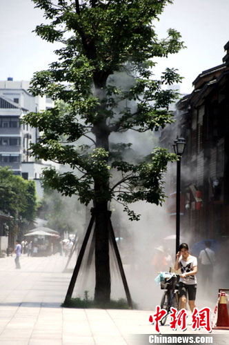 7月2日,在福州南后街游玩的市民惊喜地发现,从天而降的水雾赶走了热气,带来了清凉。笼罩在水雾之中的南后街,也有种别样的朦胧之美。据悉,这是为了应对高温天气,特地启动的水雾降温系统。目前这个水雾降温系统主要安装在南后街南北口风雨廊、蓝建枢故居外侧和南后街中段屋檐及大树上,基本覆盖了千米南后街,大约每米距离之间布一喷雾口,不定时喷出的水雾可降温6℃左右。
