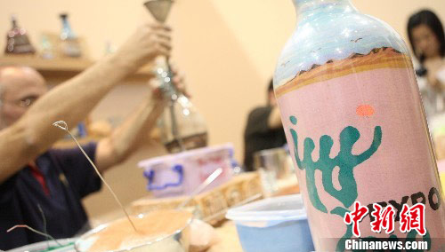 上海世博会:约旦艺人绘制“瓶中沙画”(2)