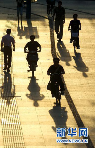 7月3日傍晚,天气溽热,人们从天津街头经过。刘东岳 摄