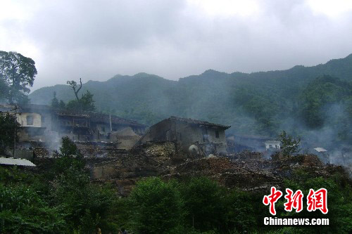 7月4日凌晨,广西河池市环江毛南族自县驯乐苗族乡发生火灾,造成25户49间居民房屋被烧毁,幸无人员伤亡。中新社发 蒙壮强 摄