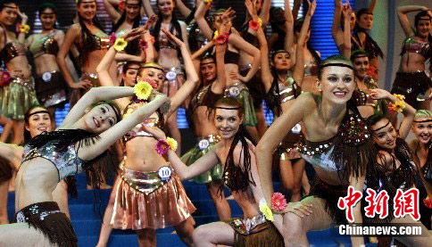 图为各国佳丽在总决赛彩排上一展风采。中新社发 钱兴强 摄