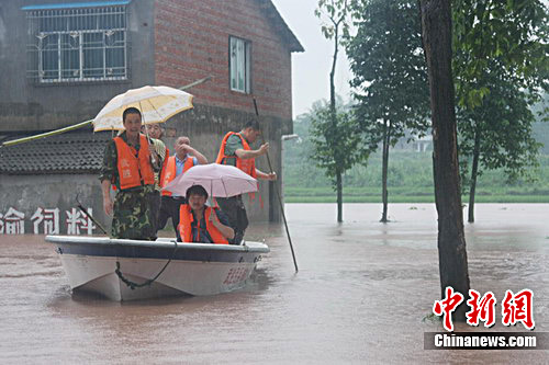 中新网广安7月5日电(苏坤明 文伟 周苍林) 7月4日至5日,位于国道212线的四川广安市武胜县万善镇遭受特大暴雨袭击,连续两天总雨量超过202毫米的暴雨,全镇洪水泛滥成灾。