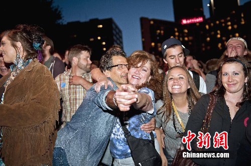 当地时间7月4日,美国民众以各种形式欢度国庆节日。西海岸的俄勒冈州波特兰市,一连4天举行的露天蓝调狂欢节,是美国第二大规模的蓝调音乐盛会。大约十余万民众在市中心的河岸边与美国著名蓝调乐队和歌手同欢,门票收入则捐给俄勒冈州为贫穷者提供免费食品的食物银行。图为4日晚间,出席音乐会的一对情侣伴着音乐开心起舞。中新社发 陈钢 摄