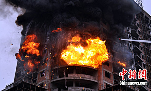 接警后,达州市119消防指挥中心立即调动通川区、达县、特勤等中队的官兵火速赶赴现场,一道道红色的闪电呼啸而至。只见大楼7楼、8楼、9楼浓烟滚滚,大火冲天,形成立体燃烧。参战官兵立即组织人员进入大楼侦察火情,并利用登高车、手持上升器救人。在通往火场的路上,官兵们遇到了铁栏、防盗网和地笼,导致 不能直接进入火场灭火,他们只好利用破拆工具破拆障碍,并匍匐前进,展操、铺带、连接水枪,一气呵成。