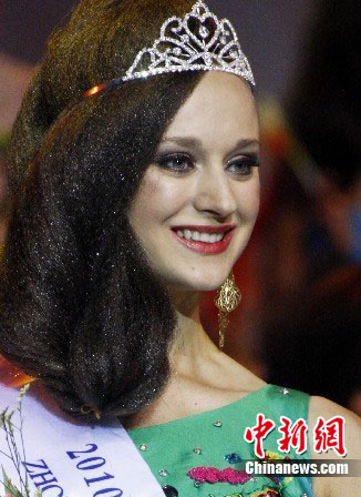 来自俄罗斯小姐(krasnitskaya victoria)获得冠军赢得“2010国际海洋小姐”称号和“美人鱼”大奖。中新社发 钱兴强 摄