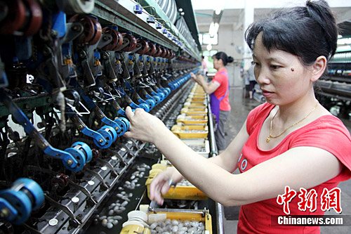 7月5日,歙县武阳乡农村妇女陈飞仙正在家门口缫丝厂上班。歙县山区乡镇办企业,成全了农村妇女在家门口上班既能照应老人,又能教育孩子,还可在承包地里干活的美事,在企业每月可拿到上千元的工资。(吴建平 胡晓燕 摄影报道)