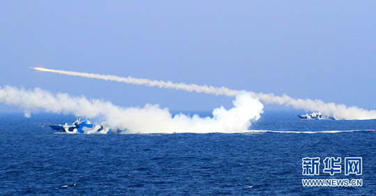 图为演练中新型导弹艇向海上目标发射导弹。查春明 摄
