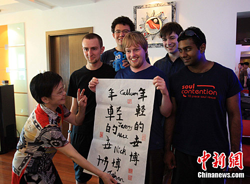参加“年轻的世博之世界名校大联欢”的英国牛津大学及诺丁汉大学宁波分校的学生,来到上海瑞虹新城社区,在居民家中体验原汁原位的中国文化。潘索菲 摄
