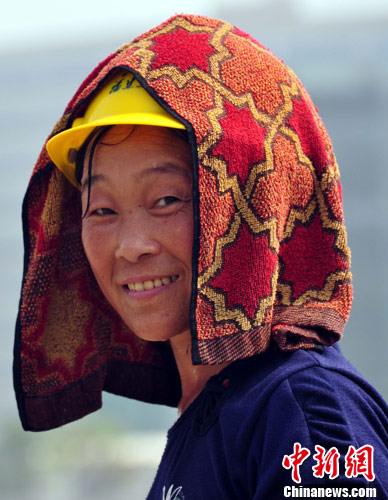 连日来,福建出现持续高温天气,各工地避开高温安排施工时间,而各位工人也在工作中想出一些妙招降温。林剑冰 摄