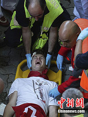 图:西班牙奔牛节上数人被撞倒踩踏(3)