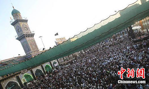 7月7日,什叶派穆斯林朝圣者聚集在伊拉克巴格达北部的伊玛目穆萨·卡齐姆清真寺参加每年一度的纪念著名什叶派宗教领袖伊玛目卡齐姆殉教的宗教仪式。