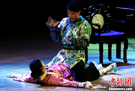 7月8日下午,上海话剧艺术中心制作的爆笑舞台剧《鹿鼎记》在台北“国父纪念馆”紧锣密鼓的彩排。中新社记者 宋吉河 摄