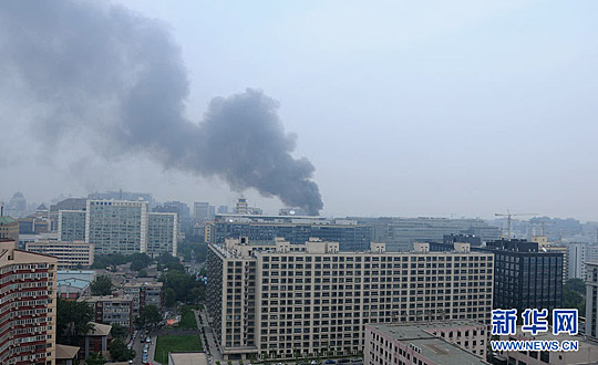 北京长安街边一施工单位简易楼失火。翟子赫 摄