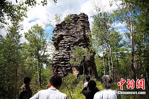 7月上旬,内蒙古呼伦贝尔市鄂伦春自治旗托河神指峰彩绘岩画发现现场,一批考古专家学者前来考察调研。中新社发 孙自法 摄