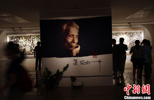 7月10日,民众在位于北京的中国美术馆观看“不负丹青——吴冠中纪念特展”,追念大师风采。中新社发 武仲林 摄