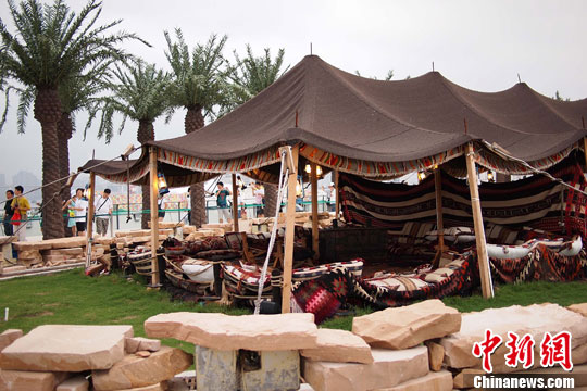 炎炎夏日,世博展馆“人气王”沙特馆新近首度开放“屋顶花园”,游客排长队,争相登顶一览当地古老游牧民族的帐篷生活。