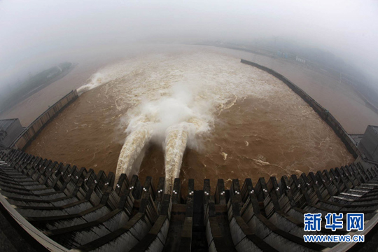 7月10日上午8时,受长江上游连续强降雨影响,三峡工程开始开闸泄洪。当日上午,三峡入库和出库流量均突破30000立方米/秒,入库流量达到36000立方米/秒。