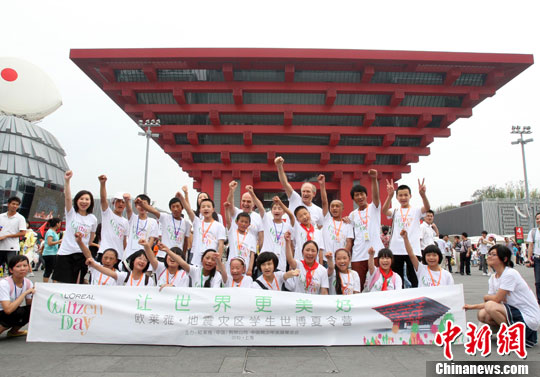 7月10日,地震灾区学生世博夏令营在上海举行,来自四川和青海地震灾区的二十名学生应邀来到上海畅游世博园。他们还带来了500条洁白的哈达和500件镶有精美羌秀的工艺品赠送给游客,以感谢全国各族同胞对灾区人民的关心和帮助。