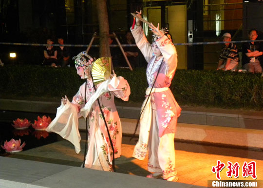 7月10日晚世博村内,“世博水乡风情夜”情景音乐会倾情上演,独具中国第一水乡特色的阿婆茶艺展示、洁净素雅、色彩明丽的传统江南水乡服饰秀、让台湾作家三毛魂牵梦绕,旅美画家陈逸飞流连忘返的水乡古镇生活情景展示及歌舞表演令美国馆、阿联酋、南太平洋联合馆等多展馆馆长、代表及工作人员沉醉于浪漫的水乡之夜。图为行腔优美、缠绵婉转的非遗代表作昆曲表演。