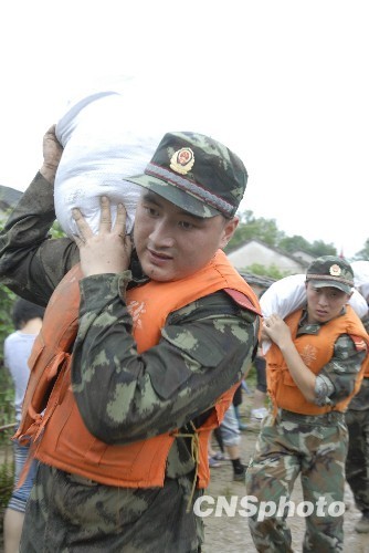 安庆市武警支队抽调官兵300多人紧急赶赴现场抢险救灾。中新社发 艾裴 摄