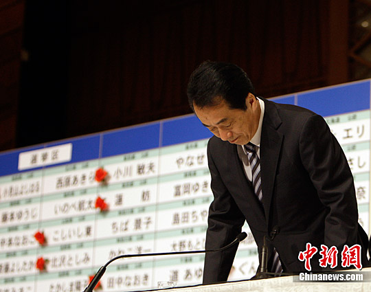 7月12日,日本首相菅直人在东京民主党竞选总部内举行记者会,对民主党参议院选举失利进行说明。同时,菅直人在记者会上表示,无论民主党获得多少议席,都希望继续担任首相一职。根据最终统计结果,在野党共获得77席,加上非改选的55个议席,在野党在参议院已占据132个议席,超过一半议席数。执政党民主党仅获得了44个议席,与其联合执政的国民新党则没有获得议席。