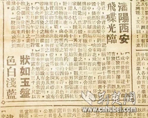 最近,杭州、新疆等地爆出了疑似UFO事件,而家住武汉大学的郭志刚则告诉记者,他收藏的1947年7月14日的《民众日报》,上面刊登着当年引起轰动的飞碟报道(如上图)。