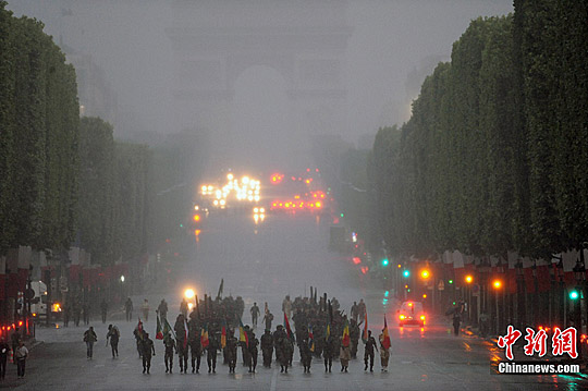 7月12日,法国巴黎的香榭舍大街上,来自13个非洲国家和法国军队的士兵冒雨进行了国庆日阅兵式彩排。7月14日是法国国庆日。1789年的这一天,巴黎人民攻占了象征封建统治的巴士底狱,推翻了君主政权。1880年,7月14日被正式确立为法国的国庆日,法国人每年都要隆重纪念这个象征自由和革命的日子。
