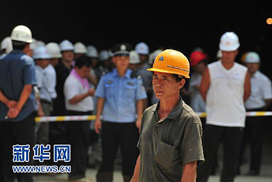 7月12日,一名工人在事发隧道口等待救援消息。黄孝邦 摄