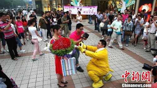 组图:男子装扮“维尼熊”王府井浪漫求婚(3)