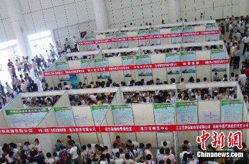 图为招聘会现场人山人海的求职者。中新社发 付美斌 摄