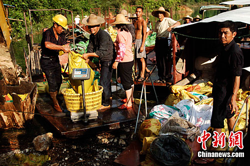 福建省龙岩市上杭县于12日下午召开新闻发布会,通报上杭紫金矿业集团股份有限公司紫金山铜矿湿法厂污水渗漏事故。据悉,有9100立方米的含铜酸水外渗引发汀江流域污染,并导致汀江流域和位于永定县境内的棉花滩库区出现大面积死鱼和鱼中毒浮起现象,据初步统计,仅棉花滩库区死鱼和鱼中毒约达378万斤。福建省有关部门初步认定此次污染属重大突发环境事件。