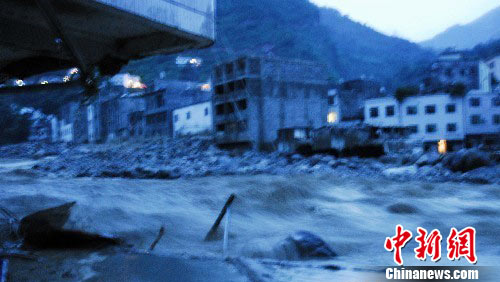 7月13日凌晨4时许,云南昭通巧家县小河镇发生山洪灾害,初步统计已造成12人死亡、32人失踪、43人受伤,并有50余户民房在灾害中倒塌、损毁。图为被洪水冲垮的桥梁。中新社发 田洪 摄