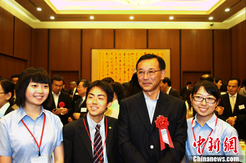 7月13日晚,日本永旺1%俱乐部与中国驻日本大使馆联合举行隆重的“2010中日小大使活动”欢迎会。此活动是由北京市政府外事办公室和日本永旺集团联合组织的中日青少年交流活动。本次赴日的40位中日小大使是来自北京6所中学的高中生。他们在接下来的一周里,将与日本青少年交流并体验日本文化。图为中日小大使与日本自民党总裁谷垣祯一(左三)合影留念。中新社发 孙冉 摄