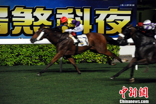 香港赛马会本季夜赛煞科,7月14日晚,在跑马地马场举行。场内精彩节目美不胜收,包括本季“冠军人马奖”的冠军练马师、骑师及见习骑师等殊荣,将竞争至曲终。中新社发 郑祚声 摄