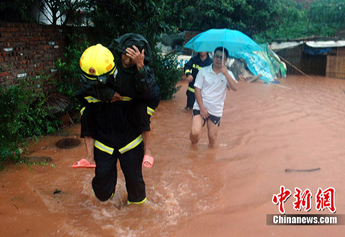 中新网南充7月17日电(陈法良 记者刘忠俊)17日,四川省南充市遭遇暴雨袭击,顺庆城区降雨量达192.6毫米,是今年以来最大一场暴雨。不少低洼的商铺、居民院等遭遇洪水围困,南充消防部队立即启动抗洪抢险应急预案,陈应学支队长、陈伟政委、薛永和副支队长等支队领导亲自带队组织抢险,营救被困群众。截止17日15时,全市消防部队共出动460多人次,共救出被困群众46人,抢救物资价值7000多万元。