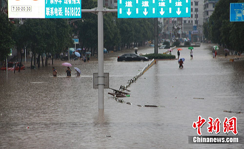 7月17日,四川万源市的特大强降雨造成河流水位猛涨。该市14个雨量监测点达到100mm以上,降雨量最大的太平镇5小时达到245mm。有52个乡镇不同程度受灾,受灾人口35.3万人,造成直接经济损失2.56亿元。截止目前,暴雨洪涝灾害造成4人死亡,14人失踪,8人受伤(重伤4人、轻伤4人)。中新社发 王永明 摄