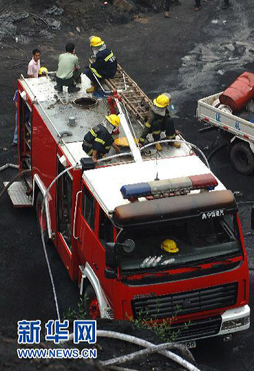7月18日,救援队伍正在用高泡灭火器进行井下灭火。刘潇 摄