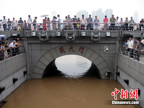 19日,重庆朝天门涨水,引来市民前来围观。周毅 摄