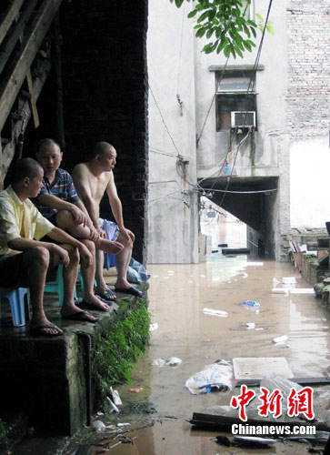 19日,重庆渝中南纪门下伍家巷居民房门前被洪水淹没。周毅 摄