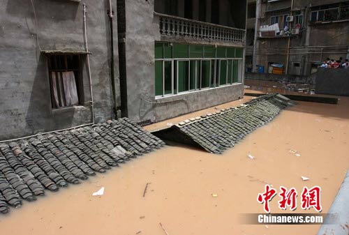 7月19日下午5时,记者来到四川广安城区江边,滨江路彻底消失,江面就在脚底下波澜壮阔。“大约水位到了25.66米,已超过最高记录,看样子还要上涨。”看守警戒线的民警告诉记者。也就是说,目前洪水已经超过了3年前的“7·7”洪灾23.5米、达“163年一遇”的程度。