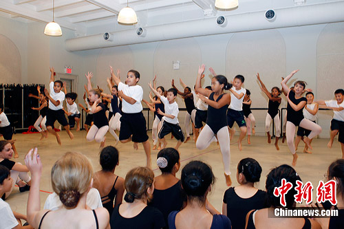7月19日,位于纽约的美国国家舞蹈协会(National Dance Institute)邀请媒体和众多家长观看了由中美两国少年合作演绎的舞蹈彩排。有5名分别来自上海少年宫和上海交通大学附属第二中学的中国少年,目前正在纽约,参加由美国国家舞蹈协会与中国的交流合作项目,他们将于7月下旬与美国的少儿舞蹈演员们一起演出由中国著名舞蹈家黄豆豆和美国国家舞蹈协会艺术总监艾伦·韦恩斯坦共同编创的舞蹈“红线”。中新社发 魏晞 摄