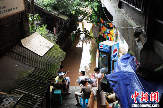 中新网重庆7月19日电(郭虹 章莹)19日,今年入汛以来最大最大洪峰经过重庆主城致两江水位陡涨,重庆古镇磁器口、朝天门等沿江一线商铺民居被淹。记者今在磁器口走访看到,当地大部分商家、市民仍生活如常。尽管路灯照明已全部关闭,部分商铺仍正常营业、客似云来,许多市民则选择在烛光中享受凉夏,静待洪水退却。