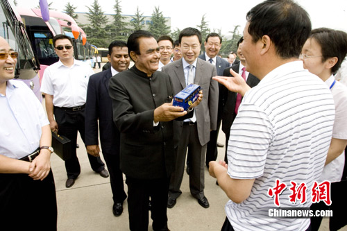 7月20日,河南郑州宇通公司,斯里兰卡总理贾亚拉特纳获赠“宇通客车”模型。当日,斯里兰卡总理贾亚拉特纳表示,要从河南宇通公司订购3000台宇通客车。集团核心企业郑州宇通客车股份有限公司(下称“宇通客车”)位于郑州宇通工业园,占地面积1700亩,稳定日产整车达140台,目前已发展成为世界规模最大、工艺技术条件最先进的大中型客车生产基地。 中新社发 王中举 摄