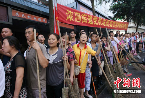 图:四川广安万人洪峰后忙清淤消毒(3)