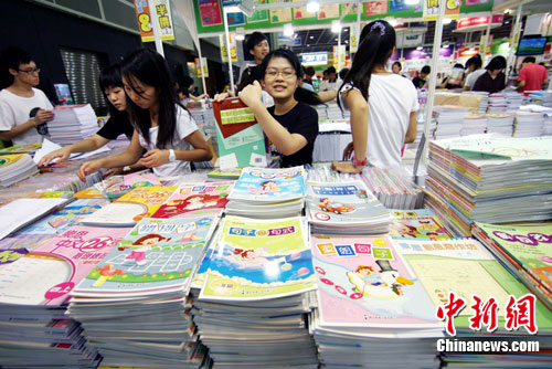 一年一度的香港书展将在7月21日至27日在会展中心举行,20日,参展商忙于布置摊位。今届书展主题为“从香港阅读世界--关爱社会 关爱地球”,超过90位作家参与250项文化及外展活动。中新社发 洪少葵 摄