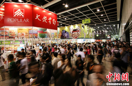 一连7天的香港书展7月21日在会展中心揭幕。有书商预料,营业额会较去年增加约百分之五。今年有22个国家及地区510家参展商参展,主题为“从香港阅读世界--关心社会 关爱地球”。中新社发 洪少葵 摄
