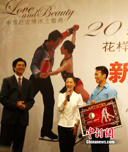 7月21日,中国冰协宣布:申雪、赵宏博冰上婚典将于9月4日在北京首都体育馆浪漫举行。届时,冰坛爱侣申雪、赵宏博将邀请浅田真央、普鲁申科等花样滑冰世界冠军,并且联袂世界著名编舞大师瑞内·罗卡、小提琴家吕思清等为中国观众奉献一场赏心悦目、浪漫唯美的艺术盛宴。中新社发 任海霞 摄
